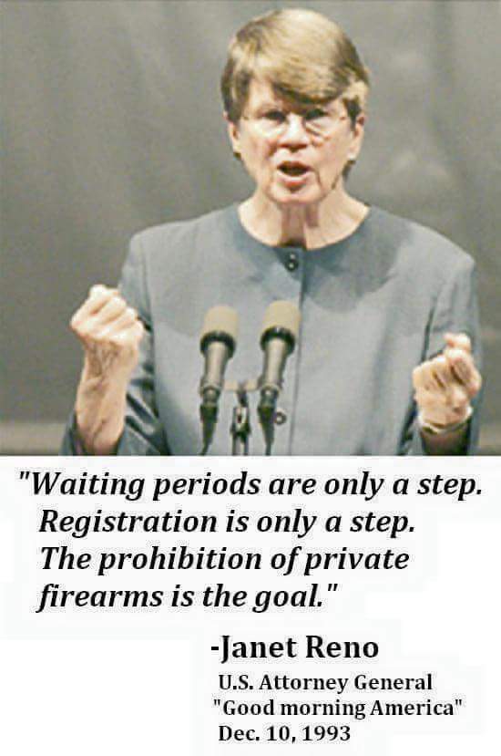 Previous Image witing periods are only step registration prohibition private firearms goal janet reno gun grab liars of left 1521584812707