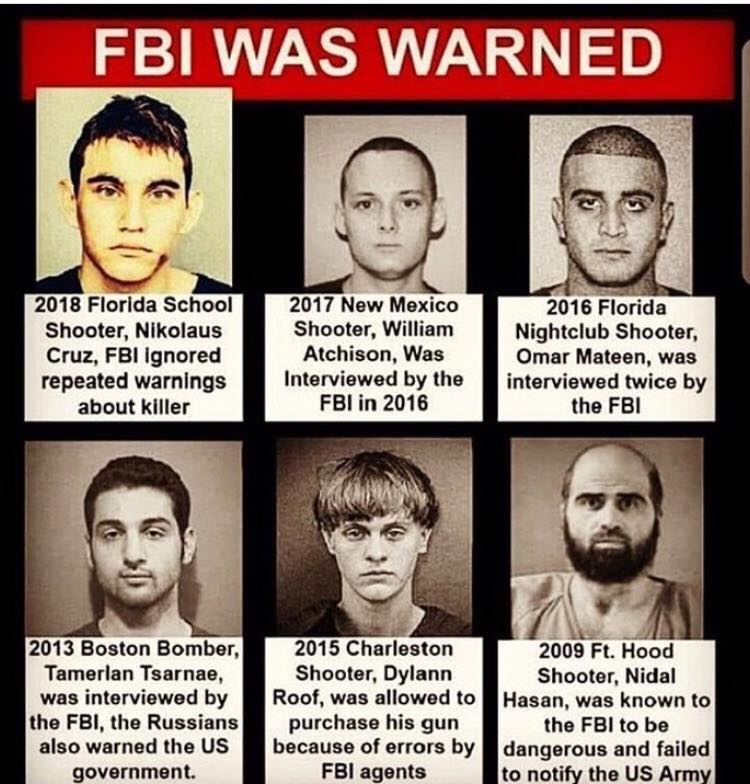 Previous Image Next Image FBI WARNED NIKOLAUSCRUZ williamatchison omarmateen tamerlantsarnae dylannroof nidalhasan