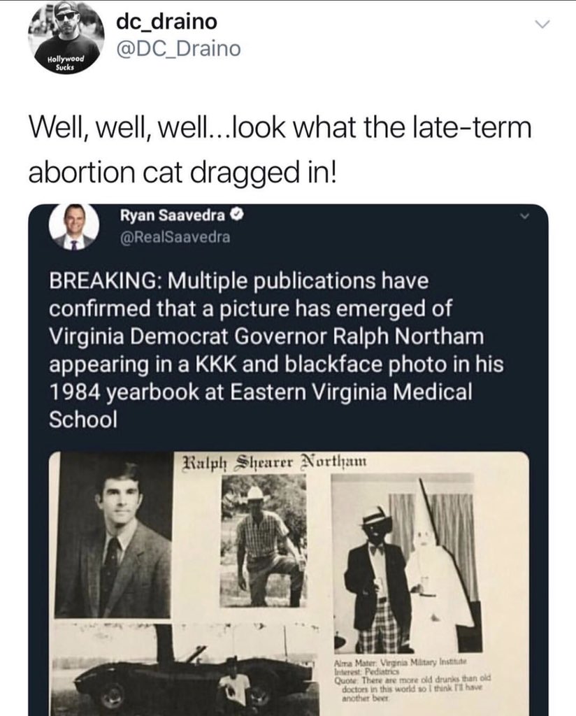 Some of his former classmates that have souls were so bewildered by his pro infanticide remarks they took the initiative of sharing some stories supported with yearbook evidence of Northam in traditional DemoKKKrat costume.