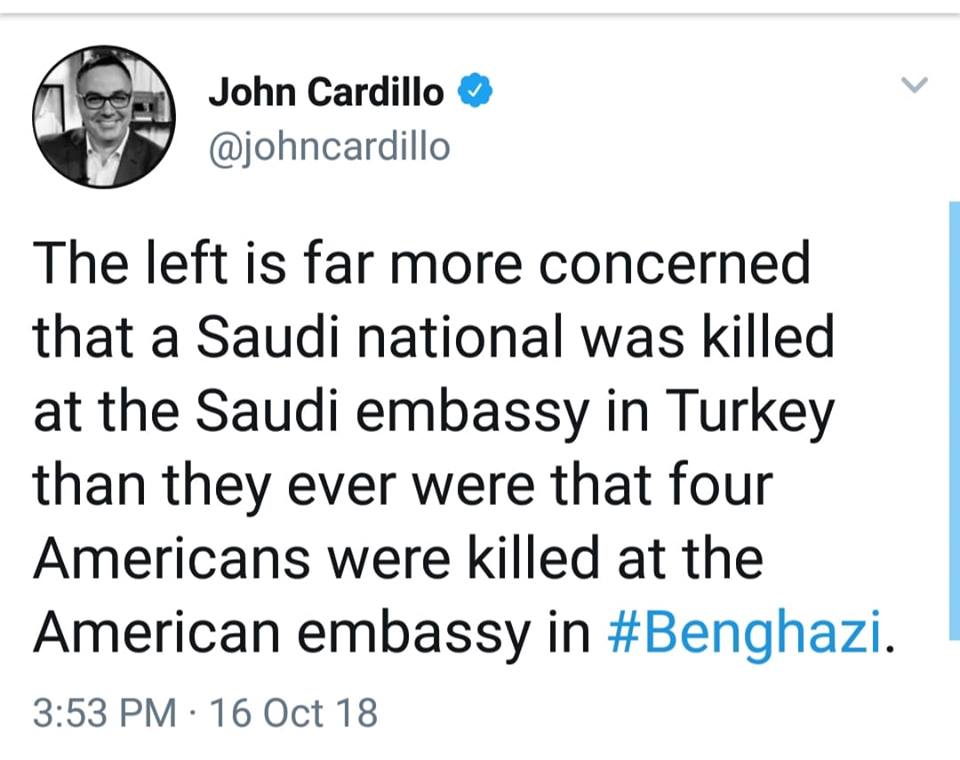 Before he was so well known as “journalist” Jamal Khashoggi was an activist that helped arrange the mass murder via Arab Spring and other Obama and Hillary cosponsored terror movements. It might almost be touching how all the liberals finally found a dead journalist they’re prepared to mourn in the form of overt and widely circulated outrage were it not so transparent as just another opportunity to take a collective crap on the President of the United States.