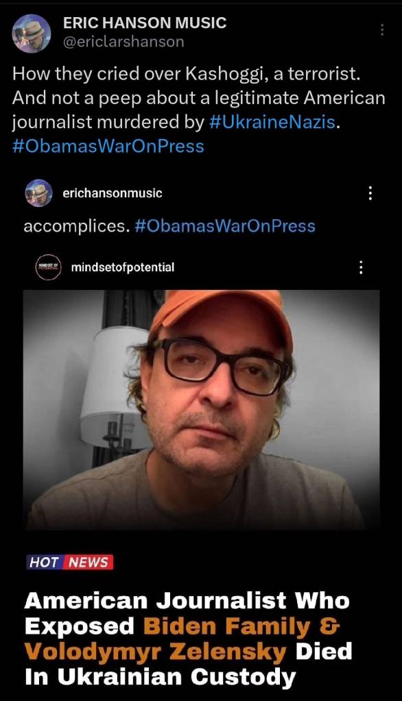 Of course when a real American journalist reports on the Biden and Zelensky corruption, the silence is deafening.