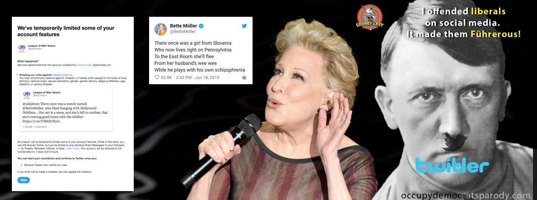 And of course I’m forced to remove the “offending” Tweet. Somehow I have a feeling that Bette’s Tweet is still up and her big Blue Checkmark isn’t in any sort of jeopardy.