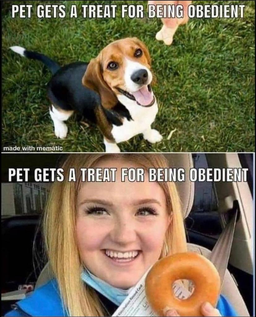With adequate experience in the FB dungeon to recognize patterns, this latest episode was predicted as an inevitability to strike before Easter Sunday. There’s no particular pleasure in being proven right, and in this case, the “violation” that was subsequently “verified” to be in “violation” of Terms of Service was the mere sharing of an innocent meme featuring a dog, a blond, a donut, and making reference to the “free donut” rewards being offered for providing proof of ID, and a medical record proving submission to the dangerous experimental RNA therapy branded as a “safe and effective vaccine,” but that’s actually only authorized for “emergency use.”