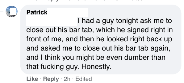 In another debate group conversation, he had questioned the heterosexuality of AntiFa, by addressing them by the acronym for Fine American Gentlemen… (adding the “g” to the “Fa.”)