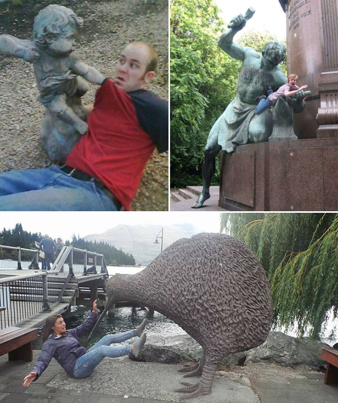 In a time where many might thirst for a balancing of scales, an email demonstrates through, what we believe might well be “staged” photos, a glimpse of a world where statues and monuments push back against the poor behavior of humans.