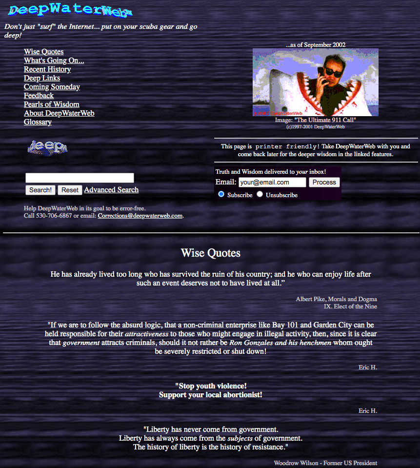 The page was a long scrolling document that took the audience “deeper and deeper” via scrolling and then linked various articles of my own making, and other content that I believed might be interesting to my audience, including a rather risqué page from across an ocean, “Tokyo Topless,” that as a young single fellow in my 30’s struck me as a good balance to the political jabs directed at the day’s Clinton Presidency and other prominent Democrats that appeared to rule the 1990’s.
