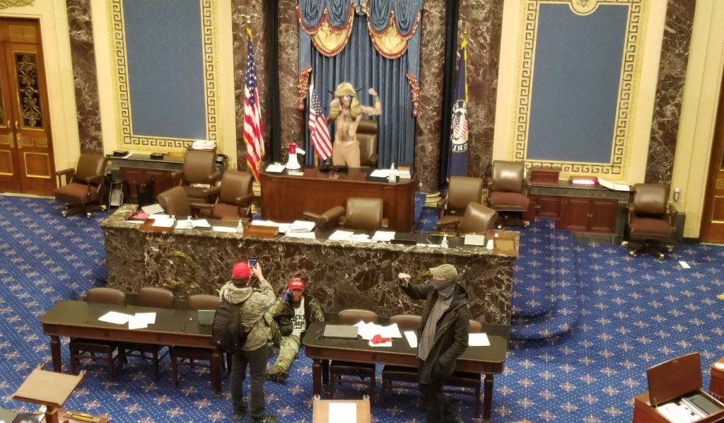 Alleged “MAGA” supporters broke glass and forced their way into the building while Pelosi and others scampered off to their respective bunkers.