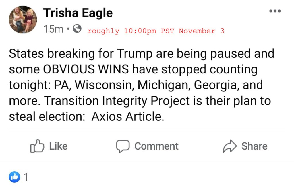 A more discerning friend saw the concern of a synchronized “pause” in counting performed, coincidentally in all the key “battleground” States. So before turning in for what seemed a clear victory, I couldn’t “unsee” her ominous message.
