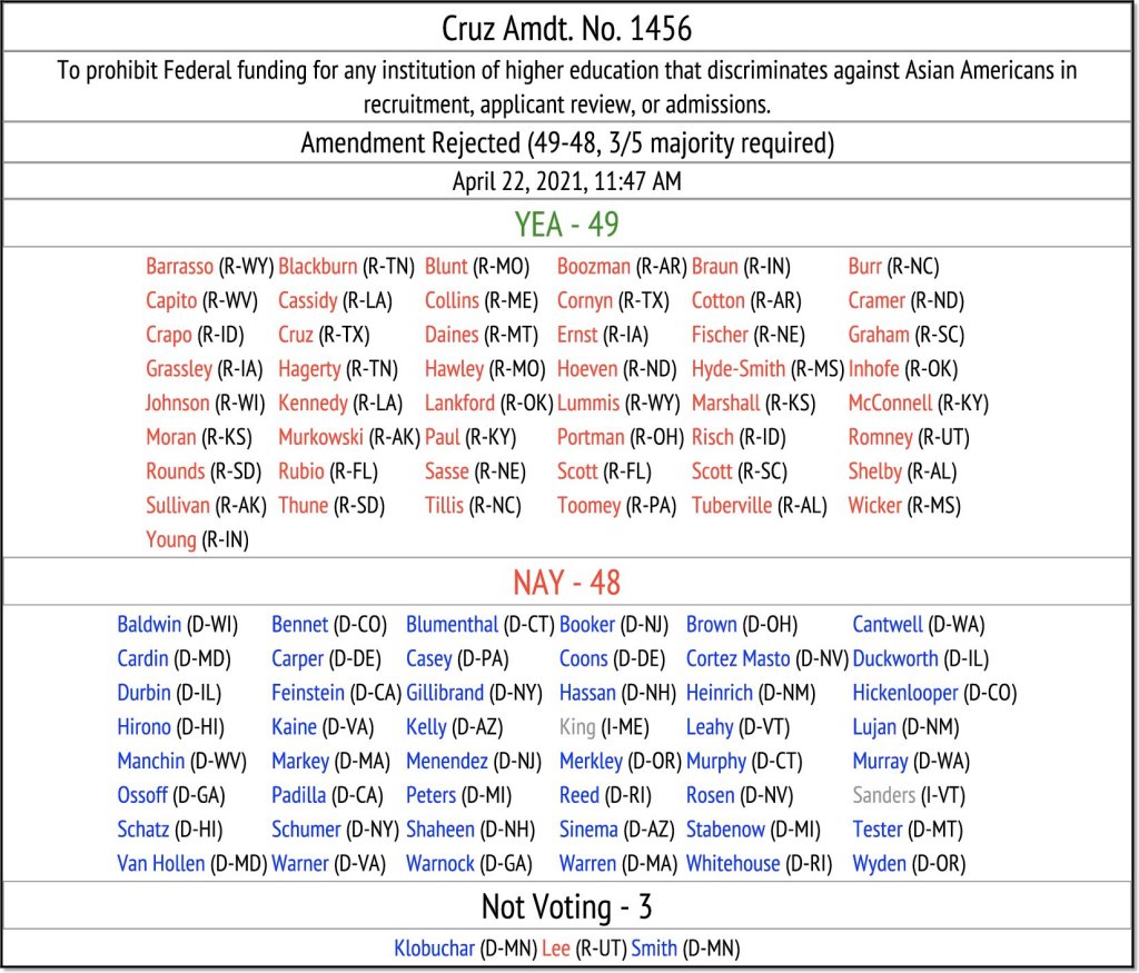 It wouldn’t be fair to leave out the other big source of anti-Asian hate, namely Democrats in Congress.