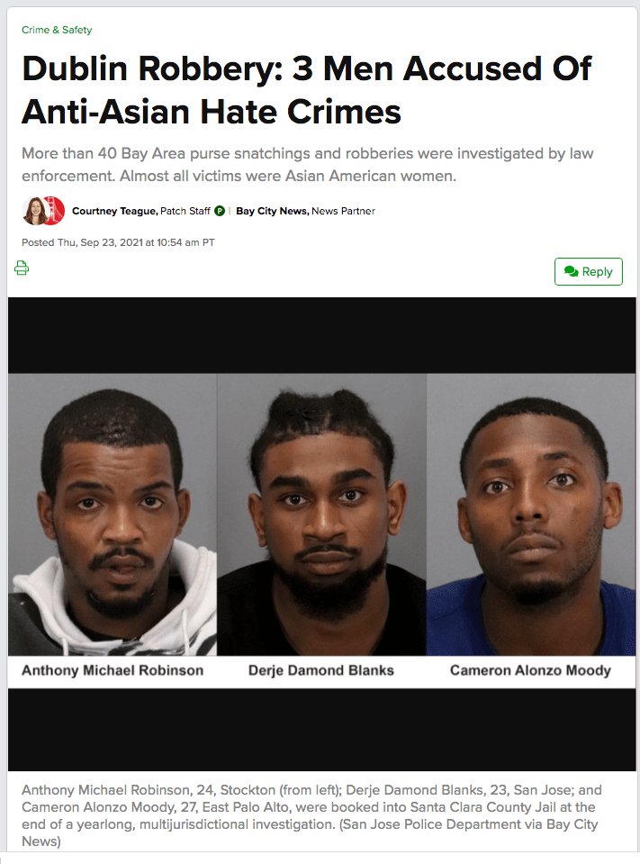 Reports of violent beat downs and even murders of Asian Americans make repeated mention of the ethnicity of the victim, but, in contrast, make absolutely no reference to the perp which is predominantly “black crime.”