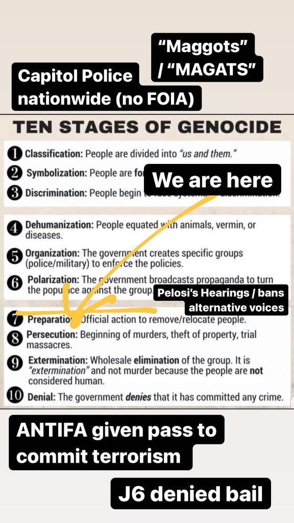 Now all the conservatives are painted as “enemies of the people,” that tried to “overthrow democracy” (without guns,) and are all trying to kill grandma by “refusing” to accept their shots!