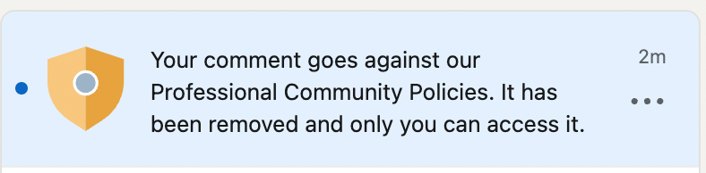 Here’s another sample of content that’s not permitted per the Communist Standards being firmly upheld on LinkedIn.
