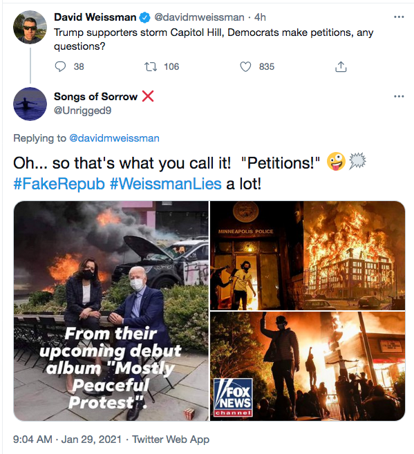 Meanwhile in the Twitter sewer: https://twitter.com/hopeformaybe/status/1354088588816867334This loser from the Twitter sewer is among the prominent props of the ironically named “Lincoln Project,” which has never been successfully connected to a single conservative value.Meanwhile the MKUltra mind rot media has nearly all of their base bewildered with the latest “insurrection” messaging, as if the President, in command of the world’s strongest military would send in a bunch of rag tag bussed in ANTIFA and a handful of MagaHats to right a rigged election!