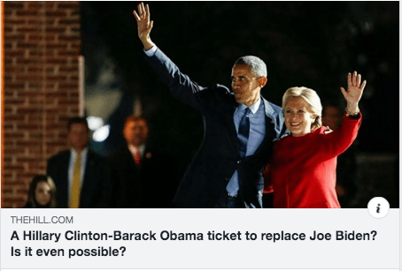 Until very recently the notion of resuming the 16 Year Plan of via the horror of two more Clinton terms seemed to be a threat that had been lowered in a coffin into freshly dug pit and, after the appropriate incantations, neatly covered with topsoil and fresh sod. But, as Biden’s clinical dementia becomes more apparent and the toxicity of his own shady dealings and apparent personal conduct issues become increasingly difficult for the most dedicated media accomplices to contain, concerns that he was merely a warm corpse foot in the door for the 2020 White House have given way to another extremely horrible possibility.
