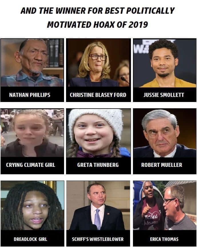 Previous Image Next Image hoax-lie-spygate-politically-motivated-hoaxes-greta-nathan-phillips-christine-ford-jussie-smollett-mueller-schiff-whistleblower-erica-thomas