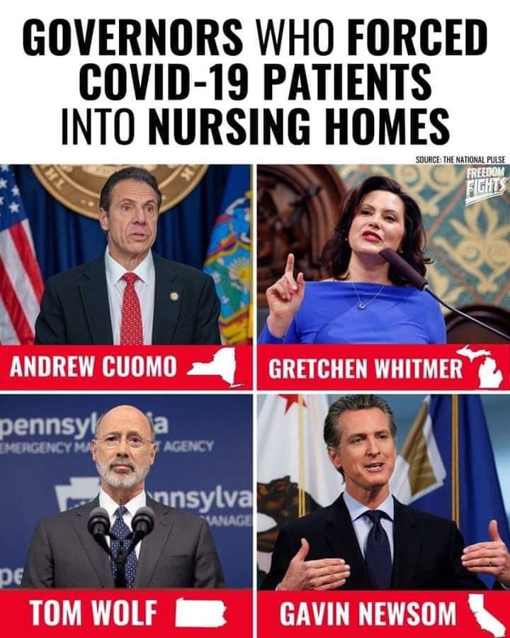 All of the above governors are directly responsible for the murder of vulnerable residence in elder care facilities that were forced to receive hot cases of COVID.