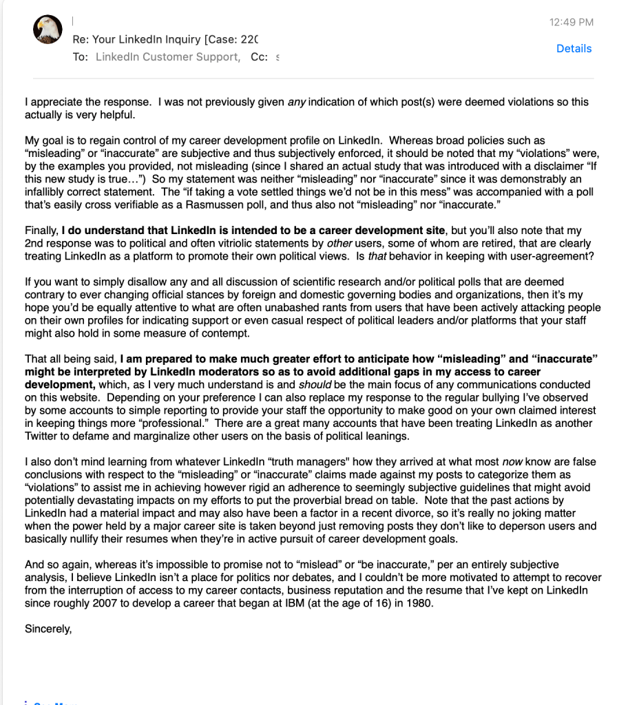 LinkedIn has made it clear that they don’t permit correction of their infesting Leftist who have turned what was once a career development site into a sewer that’s become, by some measures even worse than Twitter. As the defamatory comments by the hateful go unmitigated, attempts to offer any correction comes with great risks. And so this particular rant will be addressed here.