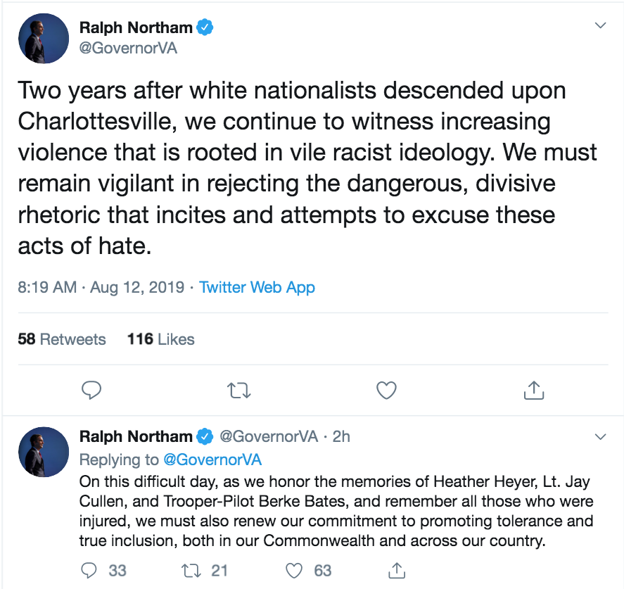 Today’s poor journalistic standards appear to have covered up more than what they have covered, and so few details outside of a “murder by NAZI” story have yet to come to light. It’s clear enough that Governor McAullife shares some if not much of the blame for the happenings of that day by his own actions to arrange violence for political gains.